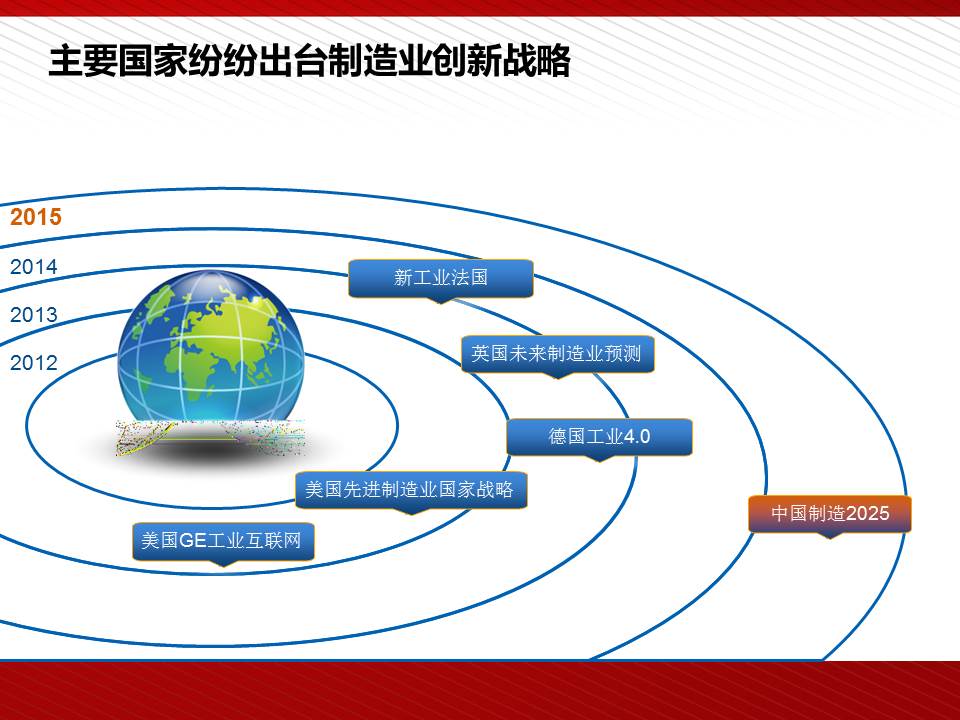 于是,很多发达国家出台了国家制造业创新战略,美国搞工业互联网,德国搞德国4.0,法国搞新工业法国,中国去年也出台了自己的中国版工业4.0——中国制造2025,这是大势所趋。