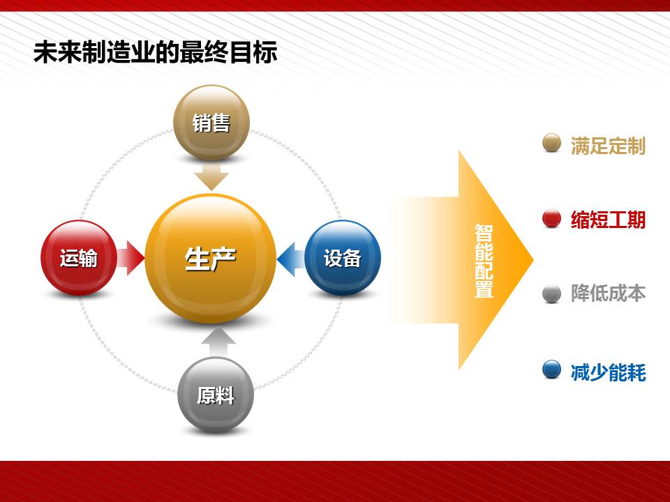 尤其是,德国搞的工业4.0,受到全球的关注。以智能化、智能制造、智能工厂为标志的新一轮工业革命正在到来,其核心是以互联网+物联网为驱动新一轮工业革命,这样一来,未来制造业就会变成一种相对的并行制造。因为在互联网和物联网驱动下,物联网实时监测、采集数据,互联网就是实时协同、控制。由此,可以缩短工期,降低成本,这就是工业4.0时代带来的好处。3.0时代是大规模生产,虽然效率高,但是产品比较单一,4.0时代要解决这个问题,既保证产品个性化,要实现大规模生产的成本低、效率快的问题,未来制造业提高效率,缩短工期、满足定制,满足不确定性的市场需求。