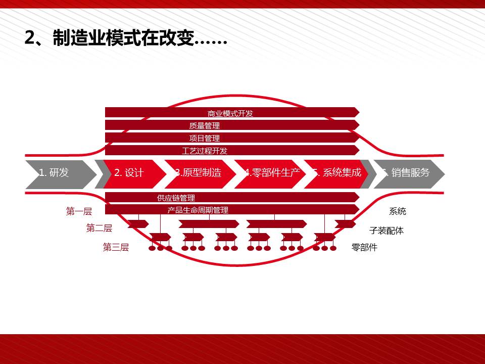 改变了制造业的思维,传统制造业以产品为中心,靠传统的分工合作、部门合作,未来因为有互联网为驱动,互联网时时协同,可以通过网络,根据客户的要求定制化、个性化的要求,通过网络以客户为中心,满足客户定制化、个性化的需求,进行部门制或者项目制的协同的发展,这是制造业思维的转变。