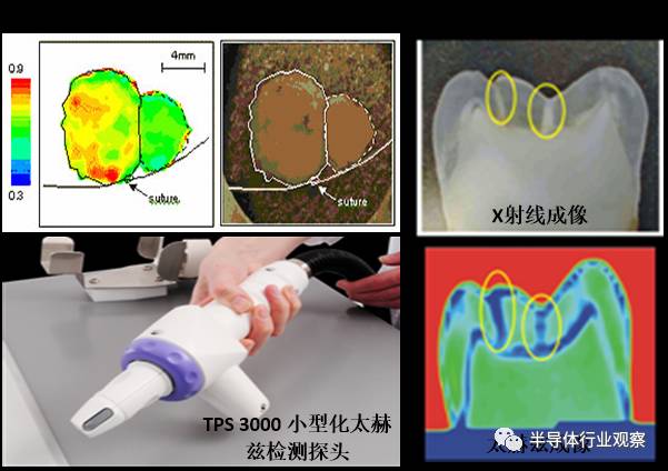 (1) 太赫兹辐射是完全非电离的,由于能量较X射线低很多,对绝大部分的生物细胞无电离伤害,适合对活体生物或组织进行实时检查。如皮肤烧伤或皮肤癌的早期诊断,口腔疾病诊断,活体DNA鉴别等。
