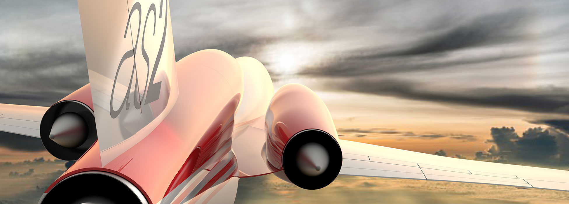 超音速公务机AS2的侧后视图(三个发动机清晰可见,都放置在机身上部)
