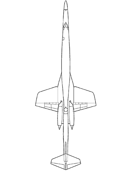 超音速公务机AS2的俯视图(细长机身,短机翼)